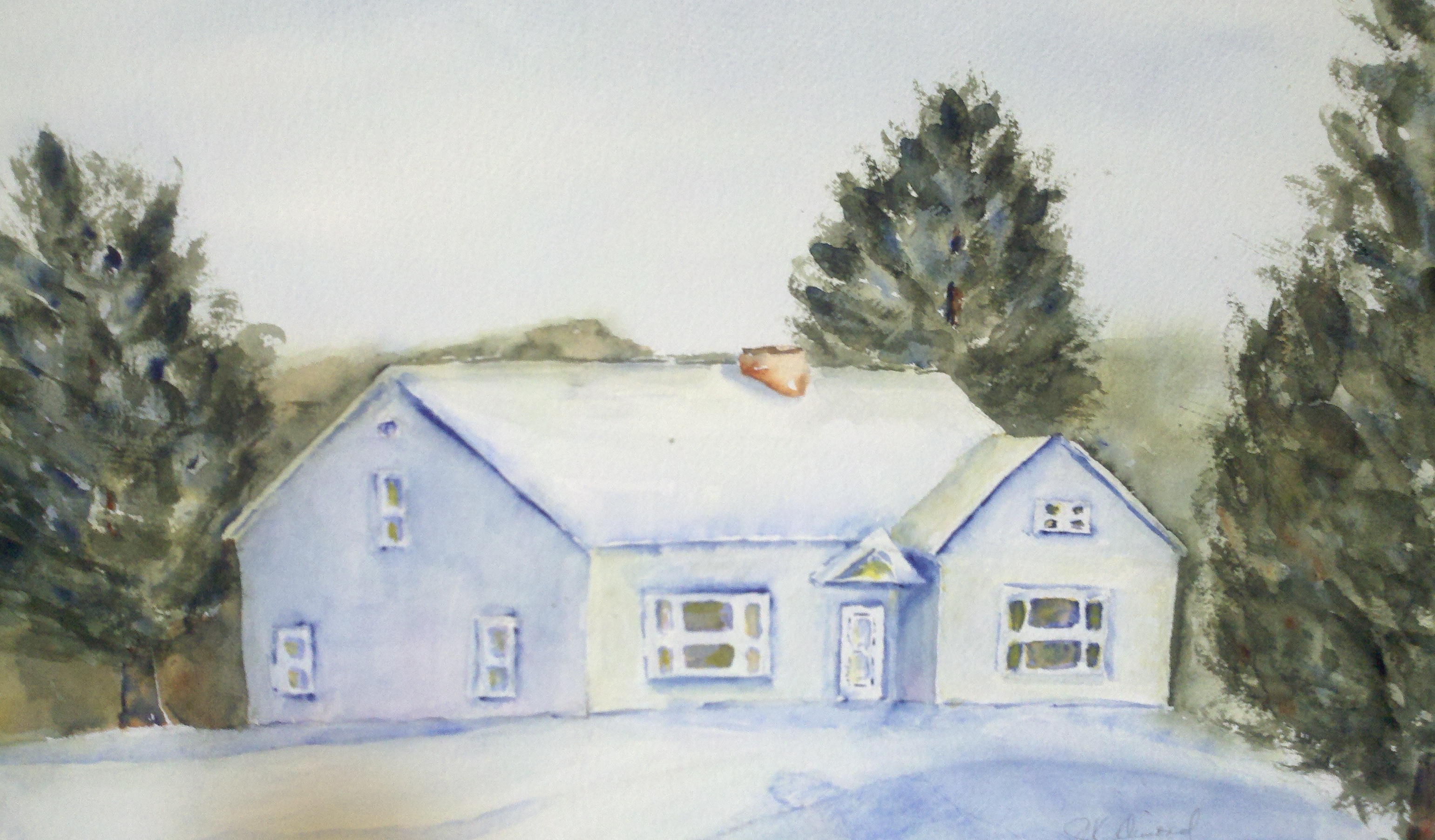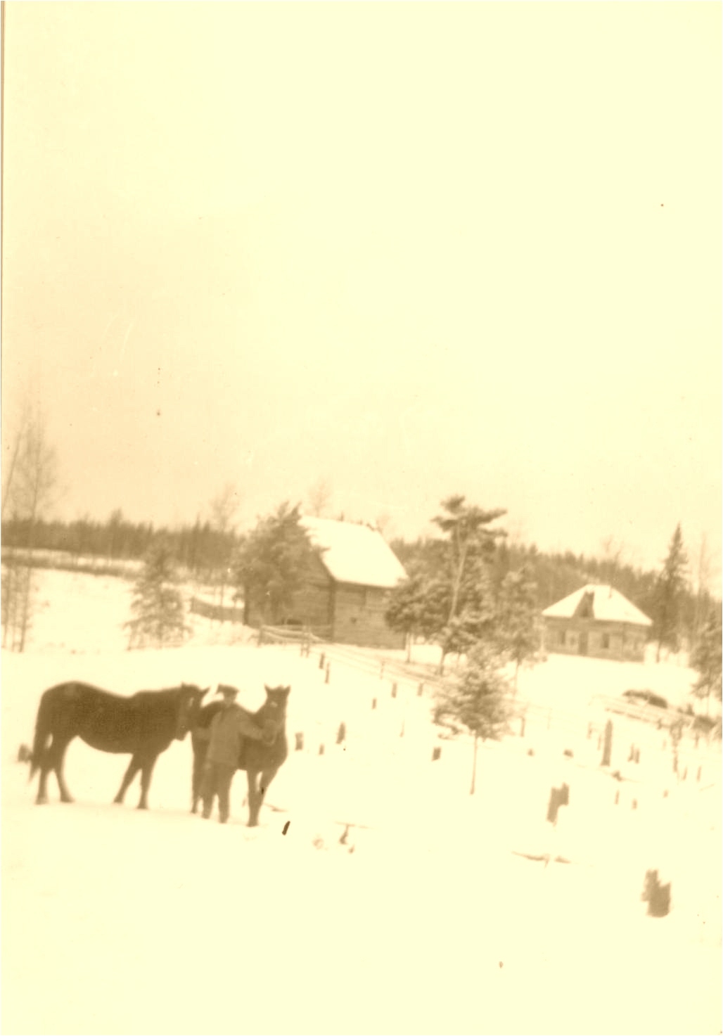 | A winter view of the homestead with Elmer and his horses (1920) |