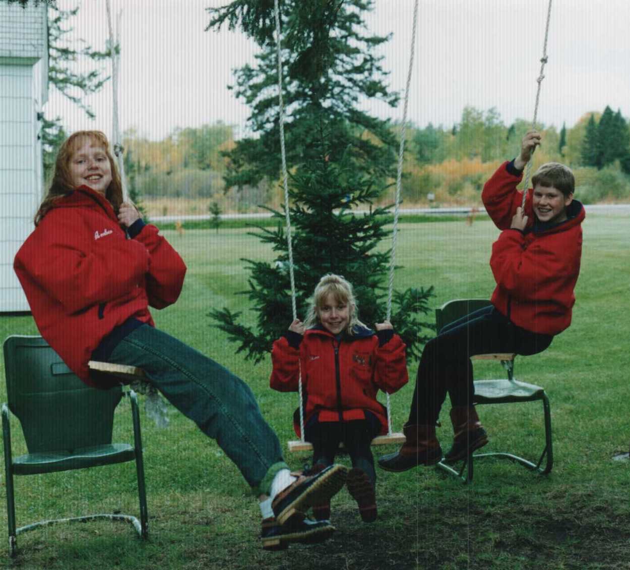 | Darrold and Laurie at The Farm (1973) | Amber, Shana and Dustin enjoy the swing at The Farm (1994) |