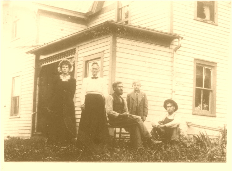 | Elmer and Emma (center) host Ladies Aid (1915) | Front, Alice and Ernie; Back, Allen, Emma and Elmer (1919) |