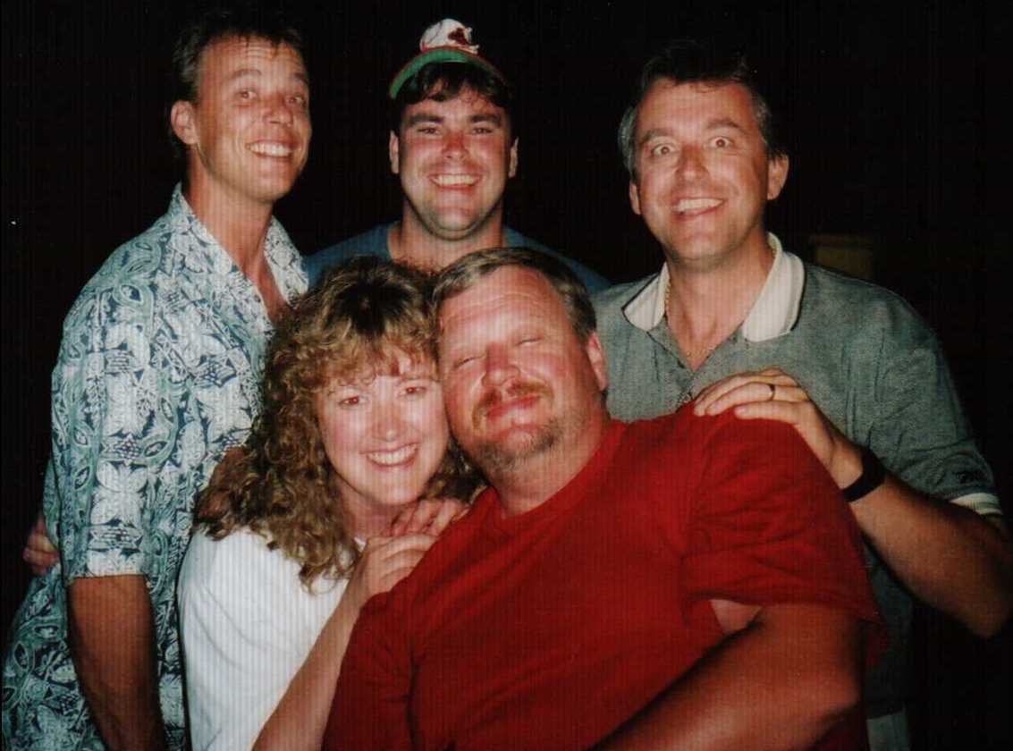 | Dale, Debi, Dave, Denny and Darrold enjoy one of the many evenings at The Farm (1997) |