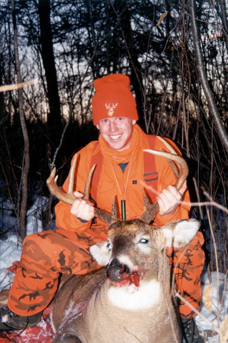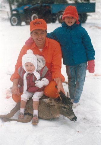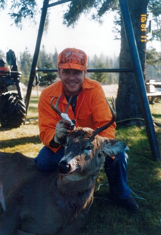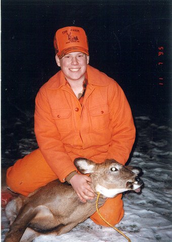 Among other things, The Farm is a deer camp. Steeped in rich tradition, the decendents of Olai and Juel Olson still hunt the land that Elmer and his brothers first set foot on in the early 1900's. The Farm perpetuates the heritage of deer hunting within the family. Once a necessity, hunting is now recreational. I am fortunate to remember many deer hunting memories over the past 60 years. In those early years, you "walked and stalked"; there were no deer stands and you would meet at the "CC Road" for lunch and trade stories of the day. Kenny, Allen, Paul Bentele, Jack Clemons, Mike Rosol, my dad and my older brother, Denny, would all be there. Grandpa Elmer, in his late 70's, was no longer going in the woods. But the spirit of the hunt still moved him as he propped his old Ensign rifle over the half-open barn door and "hunted" the pasture while the others were in the woods. I recall one morning when he watched a deer walk through this pasture the barn overlooked. It was a long shot and he didn't want to wound the deer, so he waited for my uncle Kenny to return. My Grandfather pointed out the likely trail the deer took and Kenny followed that trail. Kenny and his brother, Allen, were skilled trackers and hunters and they demonstrated that year after year. It wasn't long before Kenny returned to The Farm dragging the deer behind him. He had snuck up on it and shot it in its bed.
