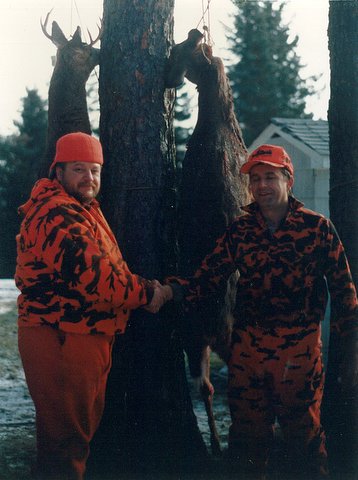 Each year we alternate hosting dinners with Marc Sterle, Jan Rizzio, and John and Kevin McHale and their camp members. We also share a traveling trophy with them, given annually to the camp member that harvests the "biggest buck" for the season. Within our own camp we have "The Denny", which annually goes to the camp member who shoots the biggest deer. ("The Denny" was named in memory of the utimate deer camp member, my brother Denny, who left us in 2005). On Saturday evenings of the last weekend of season, we alternate dinners with my uncle Rodney Persson and his sons and crew.